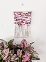 This bright and colourful wall hanging is carefully crafted with soft yarns in a bunch of different textures and colours. With an abstract and textured design, this pretty piece will make a great addition to any home.